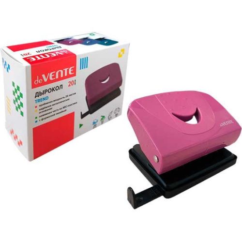 Дырокол 20л. deVENTE «Trend» 4020508 пластик,с линейкой,брусничный, (6822)