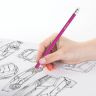 Изготовлен из дерева высокого качества, оснащен ластиком. Имеет трехгранное сечение. Карандаш длиной 190 мм легко точится и не крошится. Обладает средней степенью твердости – HB. Диаметр грифеля - 2,05 мм. Выполнен в розовом цвете с серебристыми деталями. Поставляется заточенным.